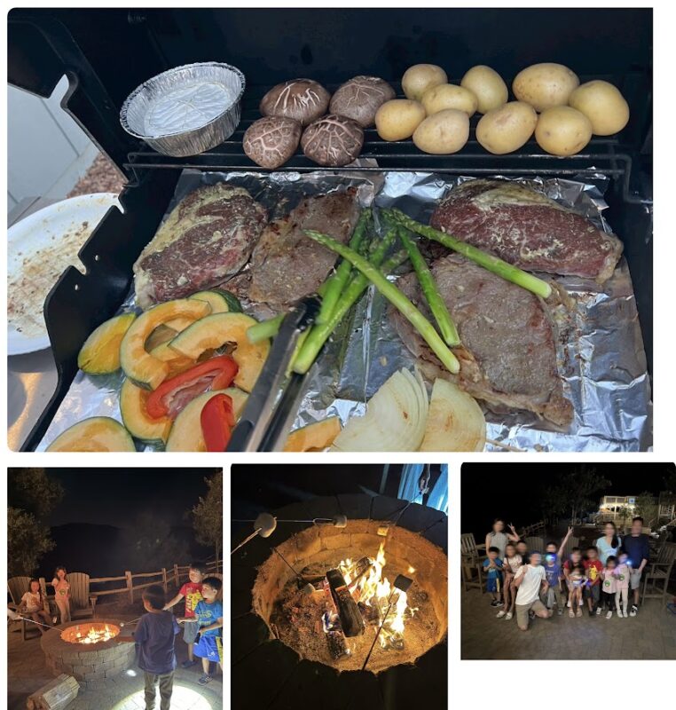 施設には冷暖房完備の快適なキャビンやRVとテントサイト、広いプール、焚き火が出来るファイヤーリング、そして大人数でもゆったり使えるプライベートBBQエリアが整っており、大人も子どもも快適に過ごせます。プールではしゃぎ、BBQで夜ご飯を食べ、焚き火でマシュマロ♪