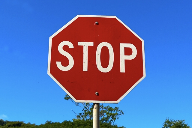 一時停止標識(STOPサイン)で完全に停止せず、ゆっくり進みながら通過してしまう行為
